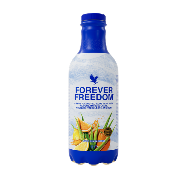 Το Forever Freedom® είναι ένα καθημερινό ρόφημα, σχεδιασμένο να στηρίζει τον δραστήριο τρόπο ζωής σου. Συνδυάζει το καθαρό ζελέ του εσωτερικού φύλλου αλόης βέρα της Forever με τρία βασικά συστατικά: θειική γλυκοζαμίνη, θειική χονδροϊτίνη και μεθυλο-σουλφονυλο-μεθάνιο (MSM). Αυτά τα συστατικά, που υπάρχουν φυσικά στον αρθρικό χόνδρο και στους συνδετικούς ιστούς, συμπληρώνουν έναν ισορροπημένο τρόπο ζωής και υποστηρίζουν τη συνολική σας ευεξία.